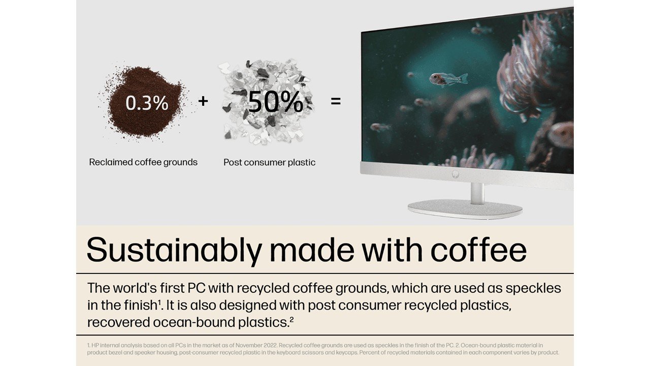 This thoughtfully designed HP All-in-One includes recycled plastic[3] and recycled metal[4] in its design.